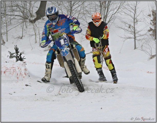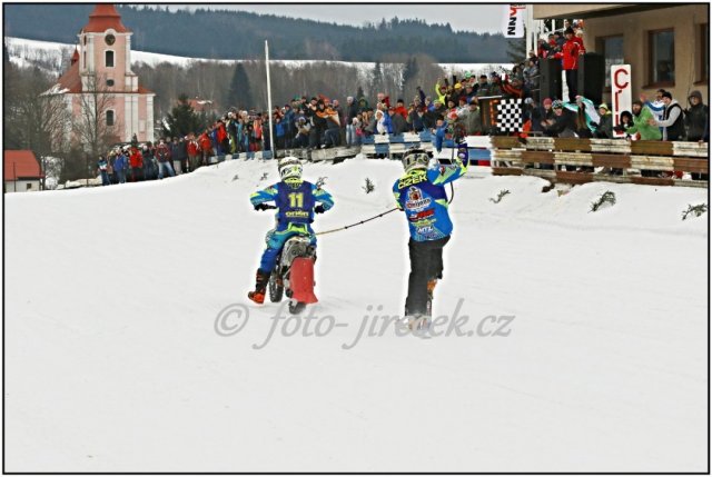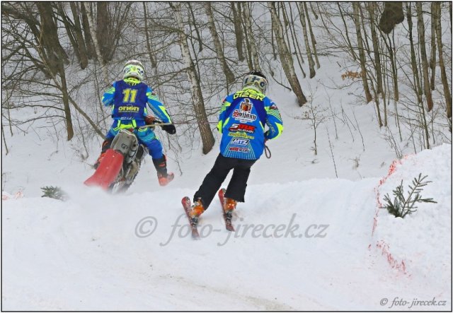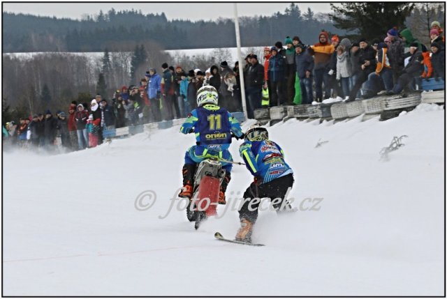Nejúspěšnější týmovou posádkou letošního ročníku MČR v motoskijöringu byl věkem ještě junior a druhý nejmladší účastník seriálu Pavel Dvořáček s lyžařem a trojnásobným Mistrem ČR v motoskijöringu Petrem Čížkem. Ani Pavel se však neobešel bez pomoci dalších dvou lyžařů, a to Tomáše Nývlta (závody v Letohradě) a Tadeáše Majvalda (závody v Chotčinách u Chýnova). Kluci nahradili Petra Čížka, když byl nemocný a pomohli získat Pavlovi opravdu hodně důležité body do celkového hodnocení. Pavel Dvořáček s Petrem Čížkem spolu poprvé jeli na domácí půdě v Rudníku. Byl to druhý podnik seriálu a bylo vidět, že se během dne jízdu od jízdy zlepšovali. K radosti jejich a cca tisícovky diváků vybojovali na hodně zmrzlém terénu skvělé 3. místo. Byl to velký příslib do dalších závodů, a že to nebylo umístění náhodné, dokazovali na dalších podnicích v seriálu. V ostatních závodech jeli velmi dobře, ale několik pádů v nepravou chvíli jim nedovolilo vystoupat na stupně nejvyšší. To však neplatilo na závěrečném podniku seriálu v Dobřanech, pro Pavla domácí trati. Domácí trati proto, že předsedou AMK Dobřany je Pavlův dědeček Josef Švorc a s pořádáním pomáhá opravdu celá rodina. Takže motivace byla veliká. Už od první kvalifikační jízdy bylo zřejmé, že se Pavel s Petrem budou prát o stupně nejvyšší. V prvních dvou kvalifikačních jízdách byli na 2. místě a poslední kvalifikační jízdu dokonce vyhráli. Celkově postoupili do „A“ finále z druhého místa a dva body za umístění v kvalifikaci si připsali do celkových výsledků seriálu. V desetičlenném finále, jsme poprvé měli tři posádky. V tomto posledním „A“ finále sezóny, šlo opravdu o hodně. Tři vedoucí posádky mohly získat titul a naše dvě posádky se mohly dostat na celkové 5. místo v seriálu. Jak jsem již zmínil, Pavel s Petrem jeli opravdu celý den skvěle. Ne jinak tomu bylo v deseti kolech „A“ finále na Dobřanském závodišti a poprvé v sezóně Pavel s Petrem nenašli přemožitele. Pro Pavla Dvořáčka, to bylo úplně první vítězství v motoskijöringové kariéře. Petr Čížek jich už zažil hodně (10), ale na jeho radosti to nebylo znát. Jak sám Petr říká „mám obrovskou radost z výsledku a taky z toho, že držím ještě pohromadě“. Celkově se v seriálu MČR v motoskijöringu 2017 tato posádka umístila na skvělém 5. místě. Pavel Dvořáček dostal ještě individuální ocenění za skokana roku 2017.